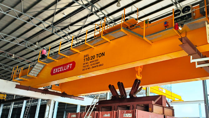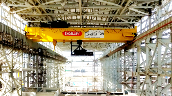 EXCELIFT雙梁橋式起重機(jī)與單梁橋式吊車類似,不同之處在于其設(shè)計(jì)為兩個(gè)主梁而不是一個(gè)主梁。其葫蘆裝置位于主梁頂部而不是主梁下方。這類起重機(jī)可運(yùn)輸處理最高達(dá)320,000 公斤的負(fù)載,性能優(yōu)越,結(jié)構(gòu)緊湊,自重輕,安全可靠并且運(yùn)行高效,能夠滿足各種工況。